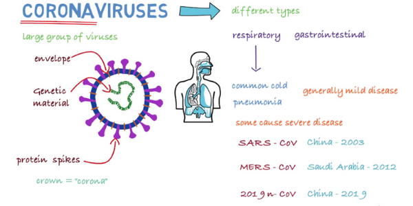 Vi-rút corona là một họ vi-rút lớn có thể lây nhiễm sang người và nhiều loài động vật, bao gồm lạc đà, gia súc, mèo và dơi. Có rất nhiều loại vi-rít corona khác nhau, trong đó có loại gây cảm lạnh thông thường hoặc viêm phế quản cấp tính. Các bệnh khác do vi-rút corona như Hội Chứng Hô Hấp Cấp Tính Nặng (SARS) và Hội Chứng Hô Hấp Trung Đông (MERS) là những căn bệnh cực kỳ nguy hiểm nhưng ít lây lan hơn nhiều so với bệnh cảm lạnh và COVID-19.